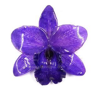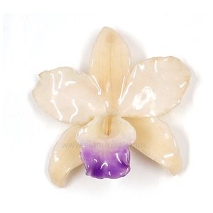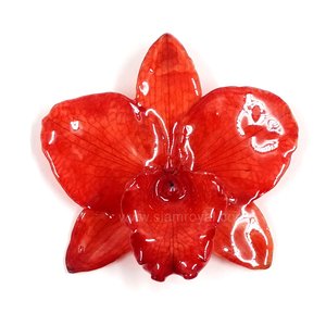 Miniature Cattleyas of 6<7 cm Width are preserved in resin and crafted into a pendant- brooch. Availabe in assorted colors.