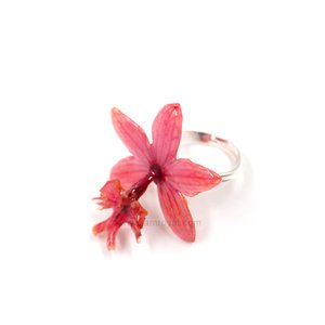 Real Epidendrum orchid Hybrid dyed into fashionable or natural colors, preserved in clear coating and crafted into a ring.