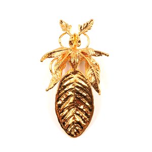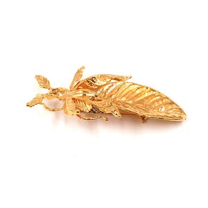 Inspired by various Wasp species, this Botanic "Wasp" created from gold plated Fern leaf Antennae, Ceylon Oak leaf wings, tamarind branch legs, Million Hearts leaf head, Elaeagnus latifolia mid-section and Guava Leaf pine abdomen. Approx. Prd. Size : 5.5 cm W x 10 cm L