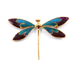 A delicate Botanic Dragonfly brooch made from gold plated peppercorn eyes, Peacock flower bud body, stamen abdomen and colorful resin wings.