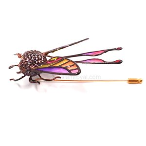 A Botanic Moth in Art Deco style, this treated colorful copper plated Moth is crafted into a stickpin from handpainted resin wings, a body of Longan fruit and antennae of fern leaves and legs of copper wire work.