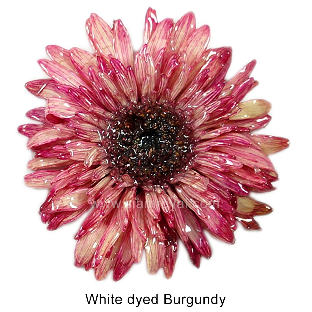 <p data-block-key="bad1d">Natural White Gerbera flower dyed in Burgundy color.</p>